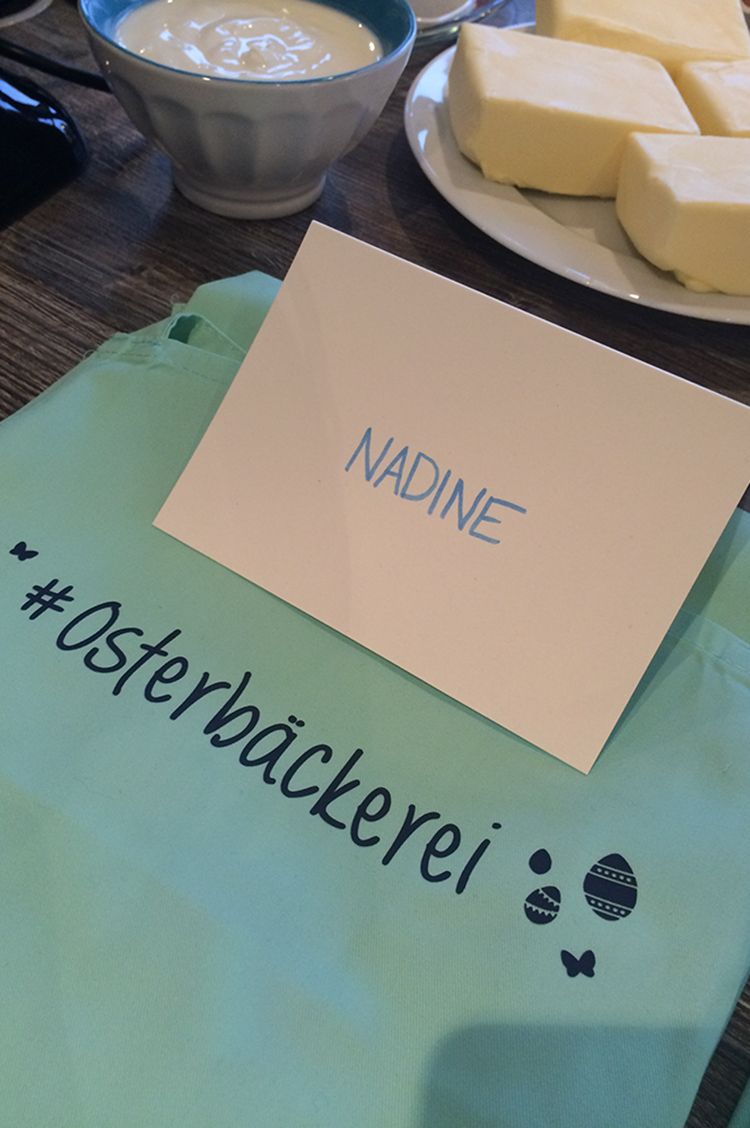 Inspiriert von der Atmosphäre, jede Menge guter Laune und ein wenig beschwipst ging es dann für uns andere ebenfalls an die Backstationen. Bewaffnet mit einer wunderschönen mintgrünen Schürze ging´s dann los. Jeder von uns hatte ein Rezept vorbereitet und Zutaten und die benötigten Utensilien an Anna von fischerAppelt durchgegeben. Die komplette Arbeitsfläche und jeder freie Millimeter stand voll mit leckeren Zutaten, Küchengeräten, unzähligen Schüsseln, Gläschen, Schneebesen …