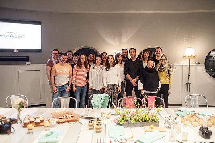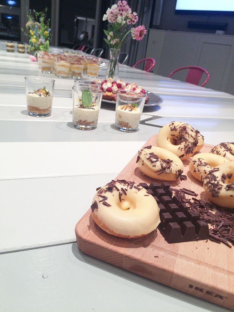 Und nachdem auch die letzte Leckerei abgelichtet war, gings in den gemütlichen Teil. Donuts, Desserts, Mini-Gugl, Macarons, Kuchen, Cupcakes und Hefe-Knoten – die lange Tafel war reich gedeckt mit den wahnsinnigsten Kreationen. Überall wurde probiert, geteilt, gelöffelt und gefachsimpelt …