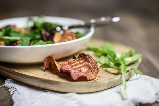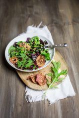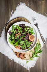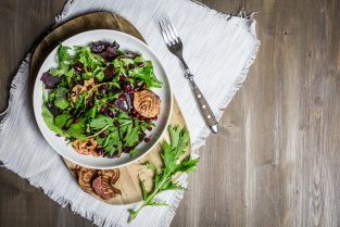 Wildkräuter-Salat mit Gemüsechips und Granatapfel